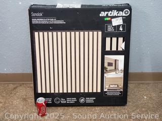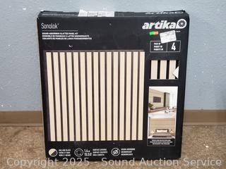 Lot #0252: 4pk Sonolok Oak & Black Sound-Absorbing Slatted Panel Kit