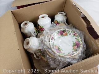 Lot #0168: 5pc Service for 4 Royal Albert Old Country Roses Fine China Dish Set