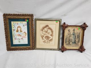 Lot #0202: 5pc Vintage Victorian Print & Other Artwork