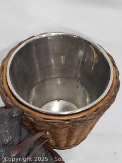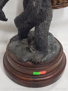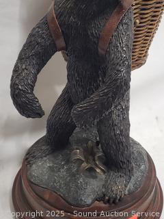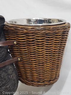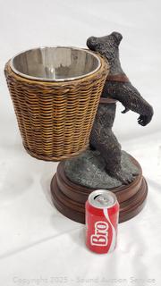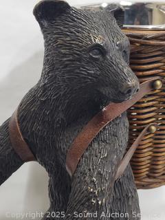 Lot #0138: Bronze Bear Sculpture w/Wicker Planter Pot Backpack