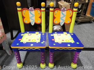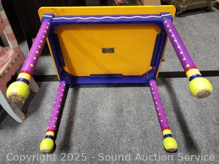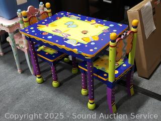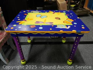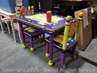 Lot #0009: Child's Blue Painted Table w/2 Chairs