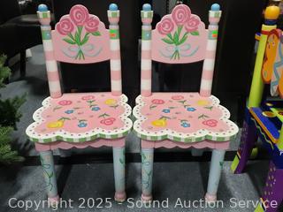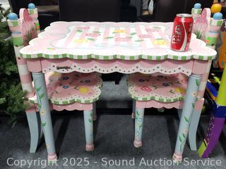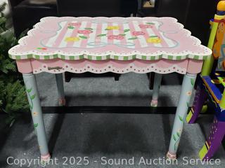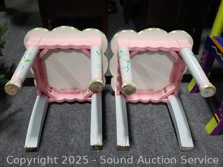 Lot #0006: Child's Pink Painted Table w/2 Chairs