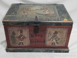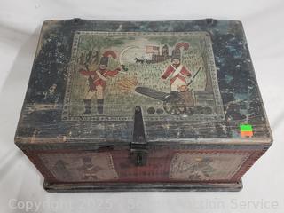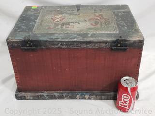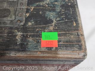 10.5" H x 18" x 12". Some scuffs, wear to finish.