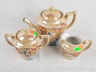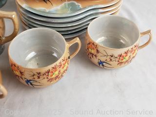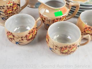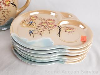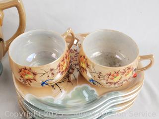 Lot #0073: Hand Painted Opalescent Japanese Luncheon Tea Set