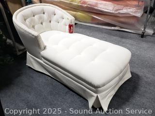 Lot #0002: Ivory Button Tufted Chaise Lounge
