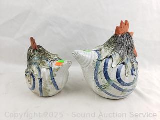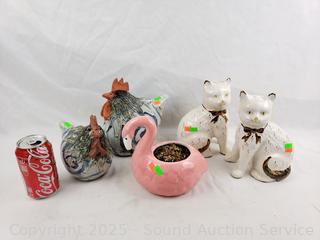 Lot #0054: Pottery Cat, Chicken & Flamingo Figures/Pot