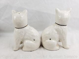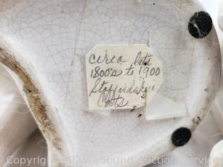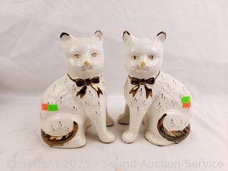 6" to 7.5" tall. Cats have some crazing, have a secondhand tag saying they are Staffordshire England c.1800's. Believe large chicken is embossed Mexico on the bottom (hard to make out). Don't see any major issues.