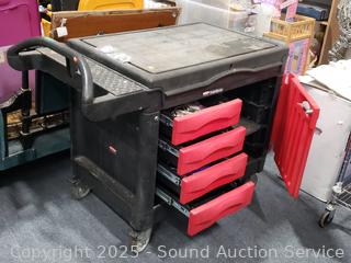Lot #0016: Rubbermaid Trademaster Rolling 4/Drawer Lift Top Utility Cart