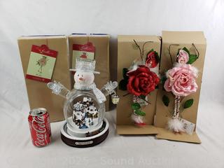 Lot #0095: Thomas Kinkade Train/Snowman & 4pc Dept. 56 Krinkles Floral Figures
