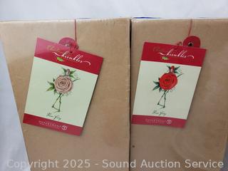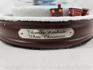 Thomas Kinkade "White Christmas" masterpiece edition, train has power, movement, train pieces are a little bent out of shape. 13" Dept. 56 Floral figures with original boxes.
