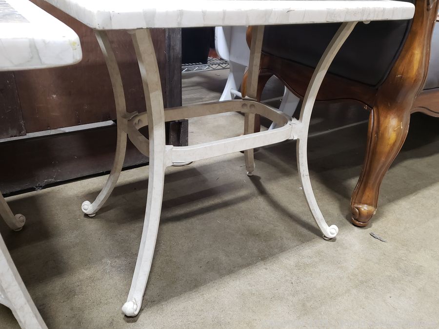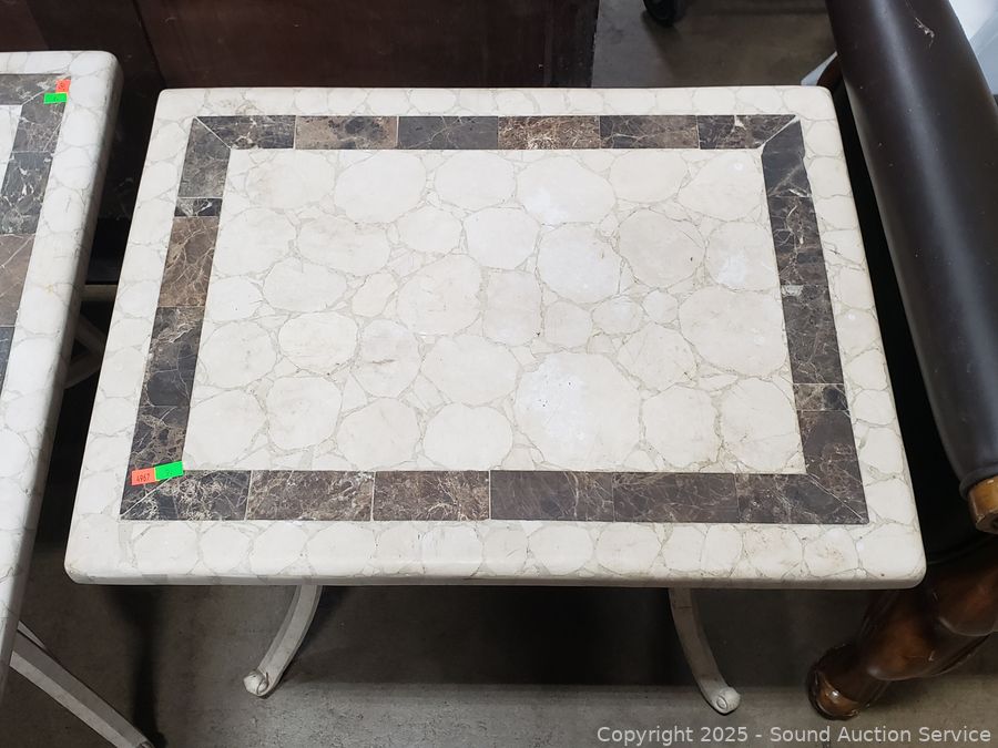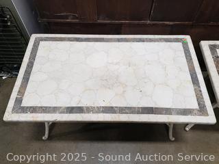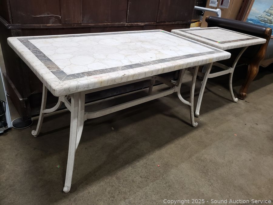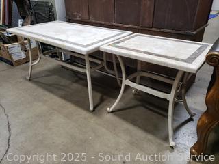 Lot #0009: 2pc Ivory Tile Top Metal Base Coffee & Accent Table Set