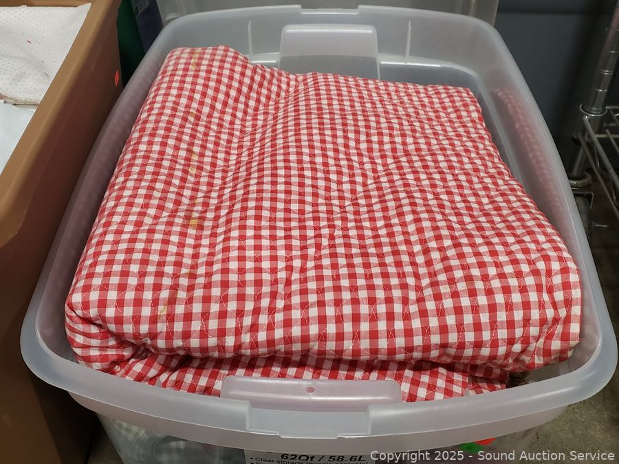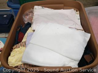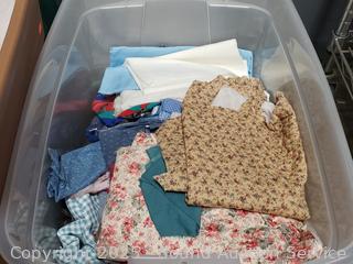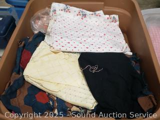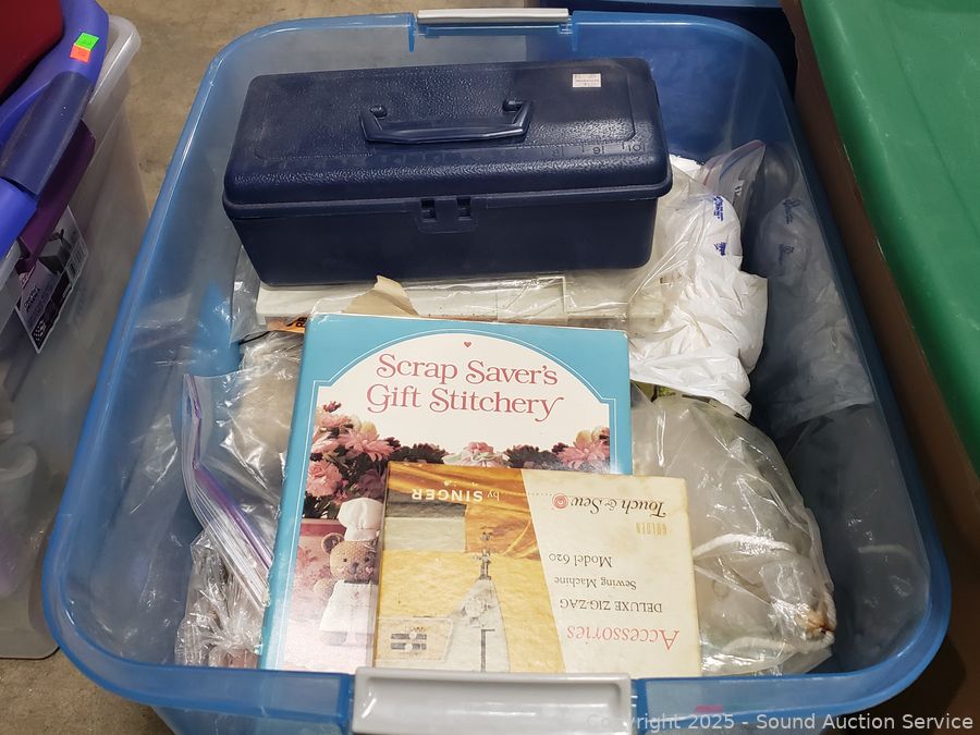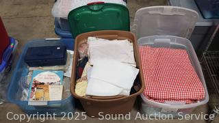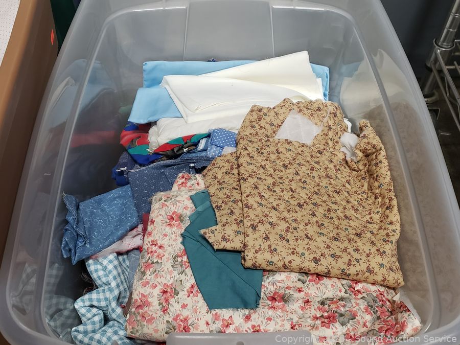Lot #0080: 3 Totes of Assorted Sewing Fabric, Thread, Supplies