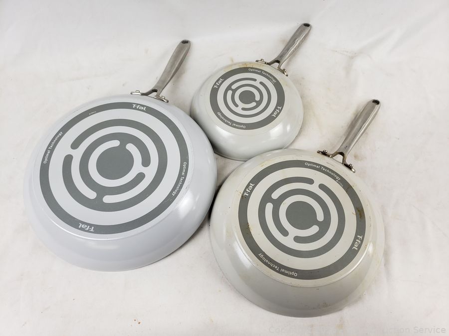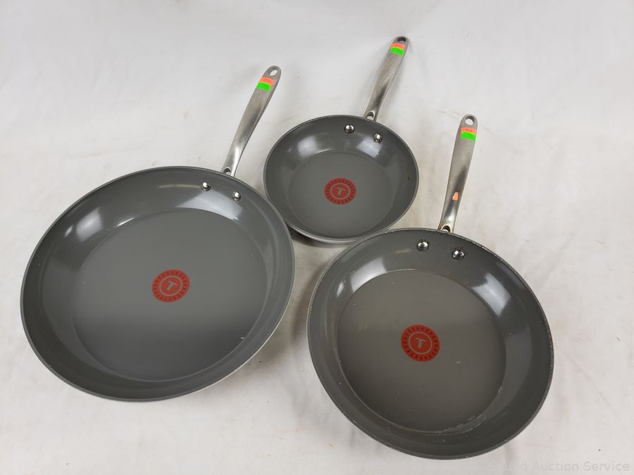Lot #0138: 3pc T-Fal Ceramic Non-Stick 8|10.5|12" Skillet Set