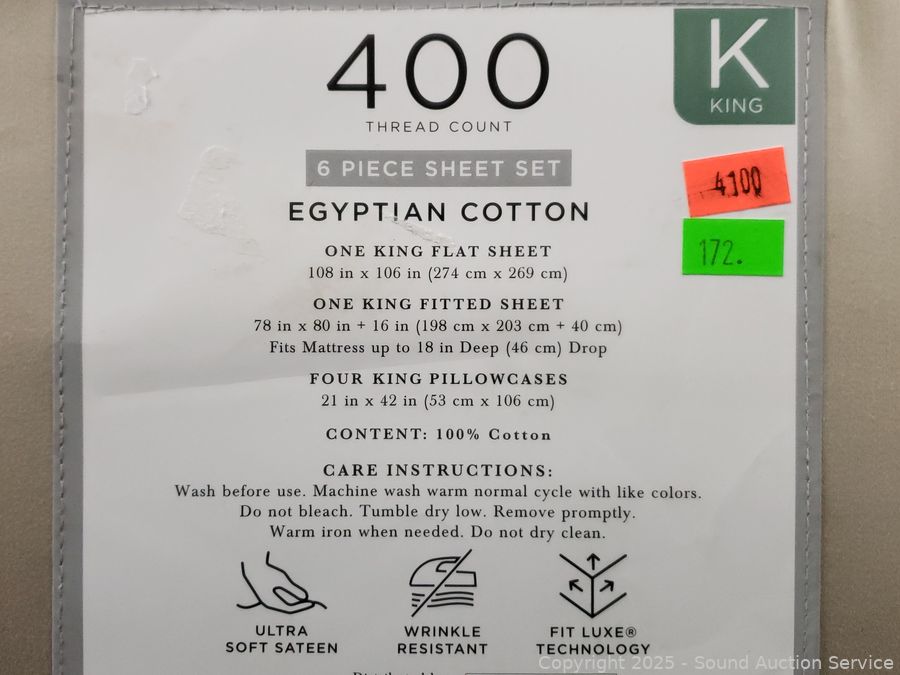 Lot #0172: 6pc Hotel Signature 400TC Egyptian Cotton King Sheet Set