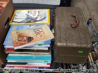 Various literature, cane, books, landing net, tripod, luggage cart, drone, etc.