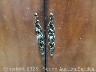 31" H x 40" W x 19.5" D. Various scuffs, wear to finish.