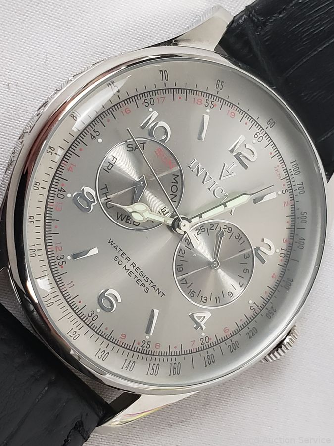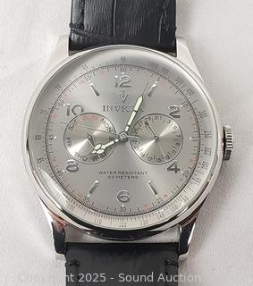 Lot #0307: Men's Invicta Silver Tone Watch w/Calf Leather Band