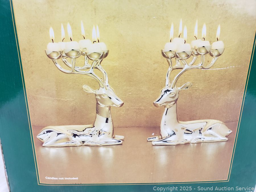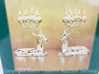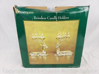 Lot #0132: Pair of Traditions Reindeer Candleholders w/12 Candles