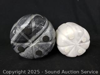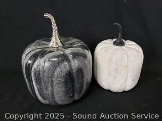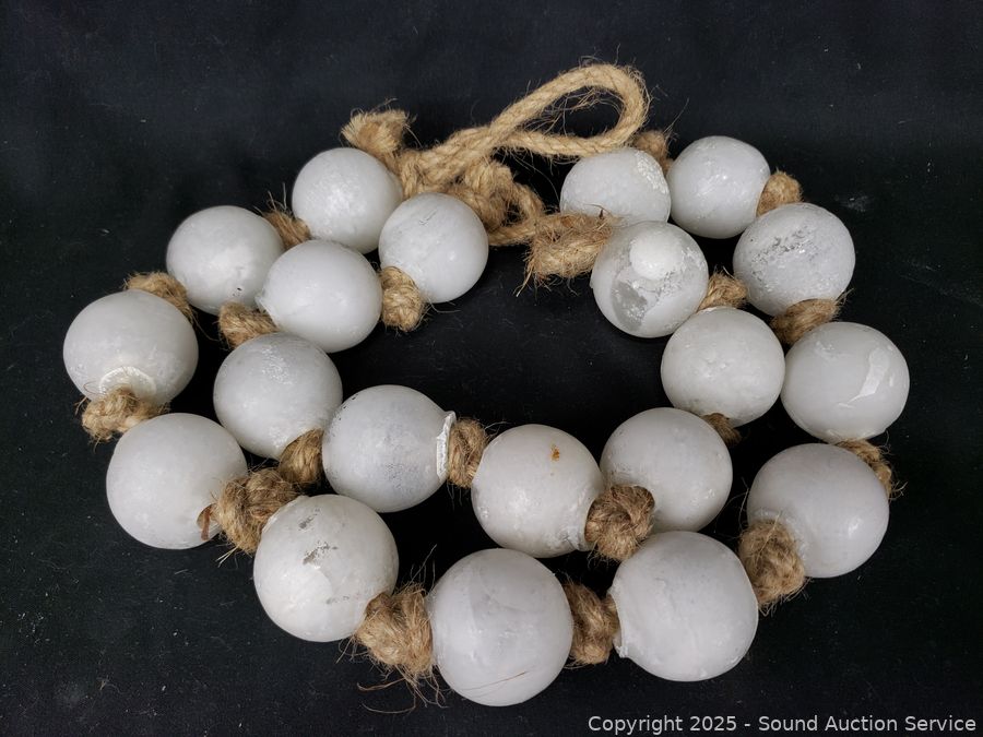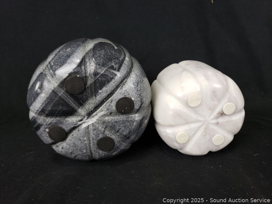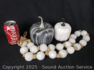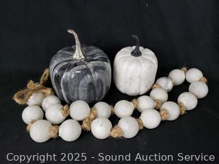 Lot #0146: Stone Bead String & 2 Carved Stone Pumpkins