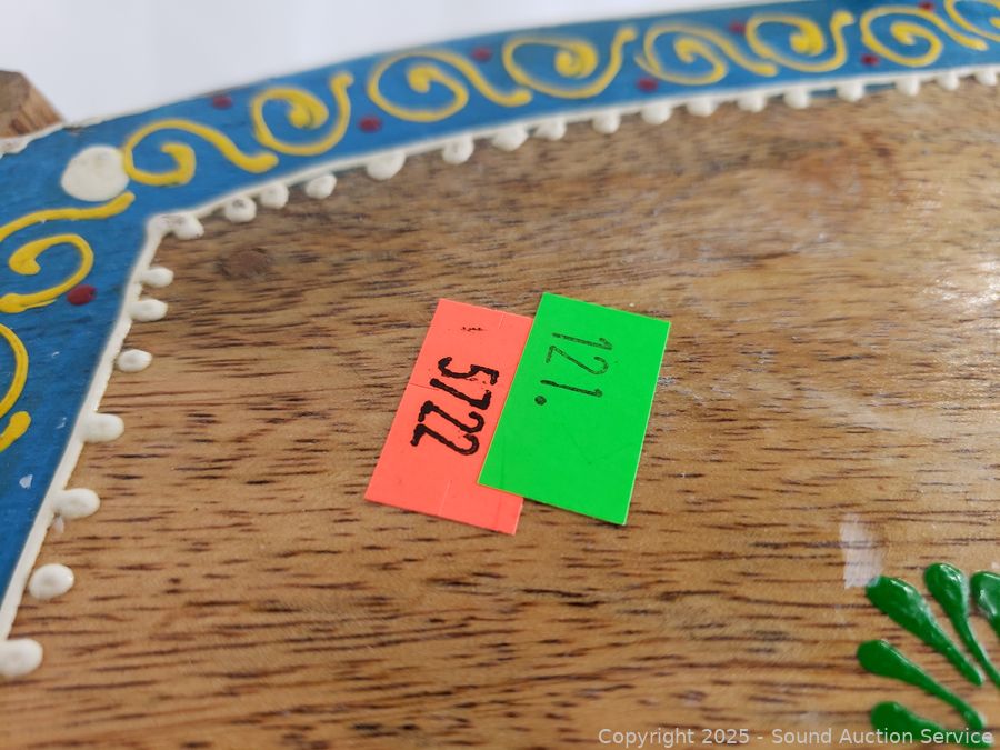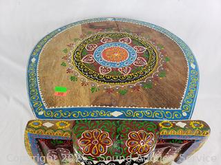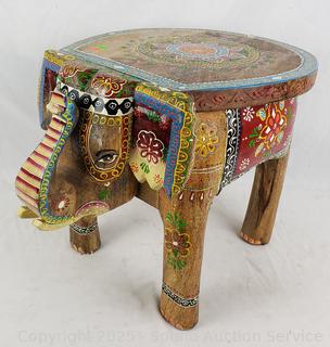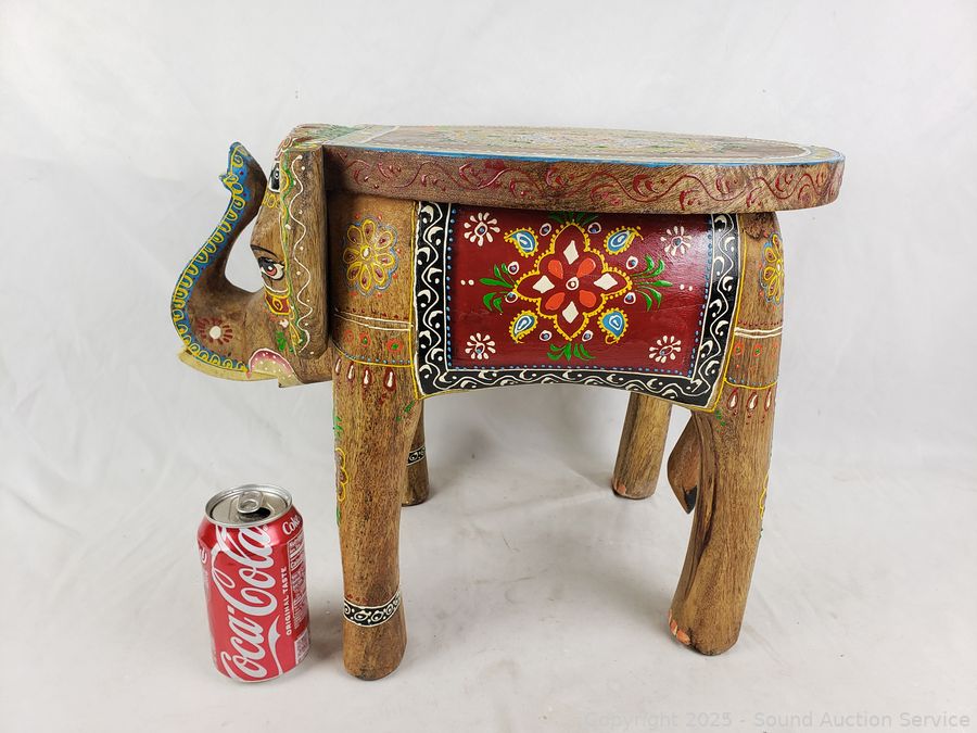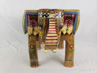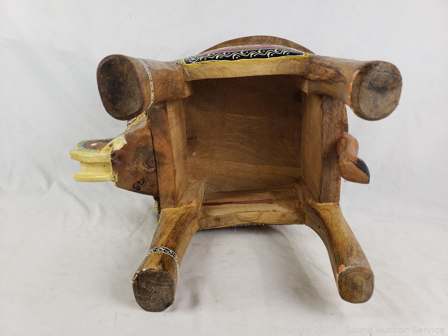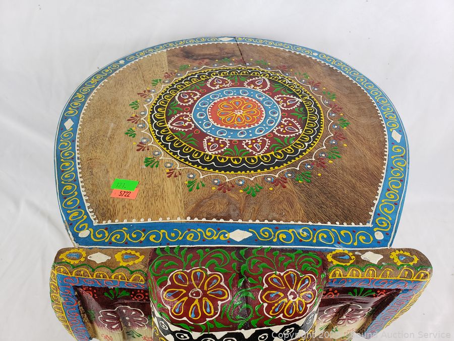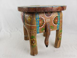 Lot #0121: Hand Carved & Painted Wooden Elephant Stool