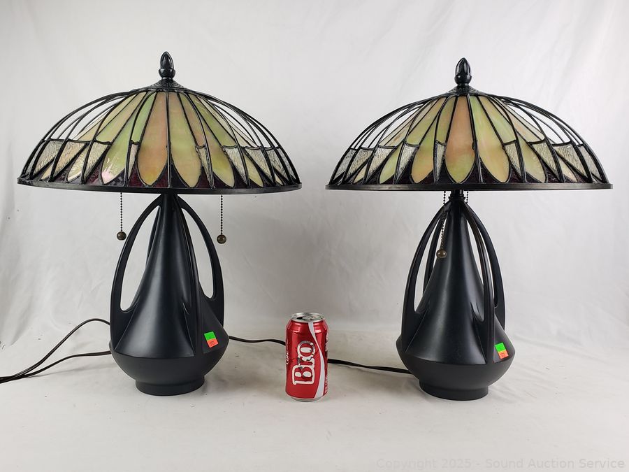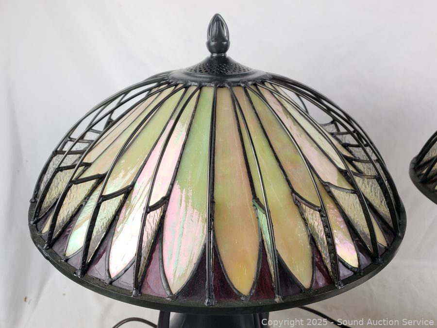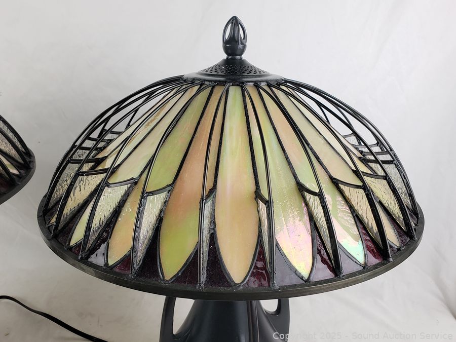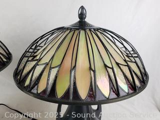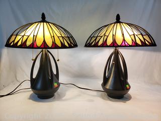 Lot #0010: Pair of Leaded Stained Glass Decorative Table Lamps