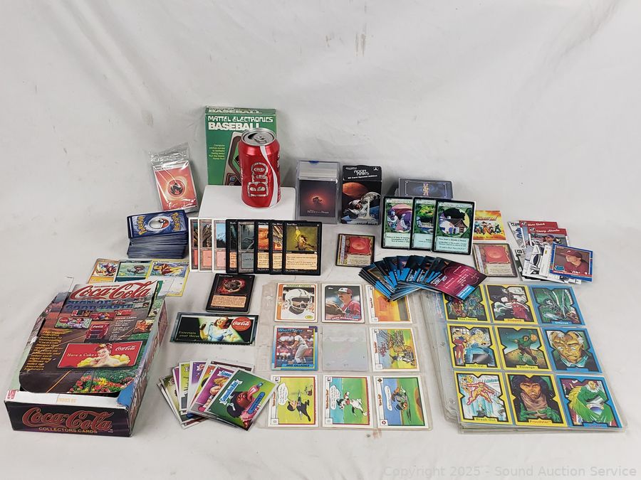 Pokémon, Magic the Gathering, Star Trek, Coca-Cola, Garbage Pail Kids, 1978 Mattel Electronic Baseball Game (works). Refer to photos for lot contents, more details.