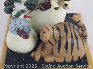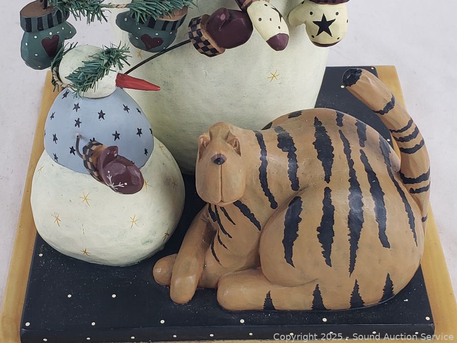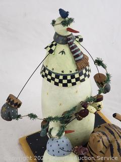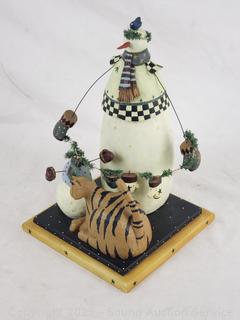 Lot #0112: Williraye Studio Sculpted "Snowman & Snowchild w/Cat" Sculpted Figure