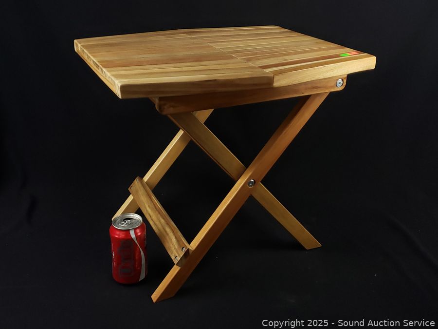 Lot #0069: Melino Folding Teak Wood Side Table
