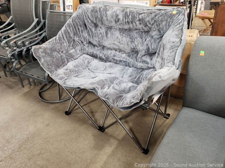 Lot #0028: Plush Gray Packable Loveseat