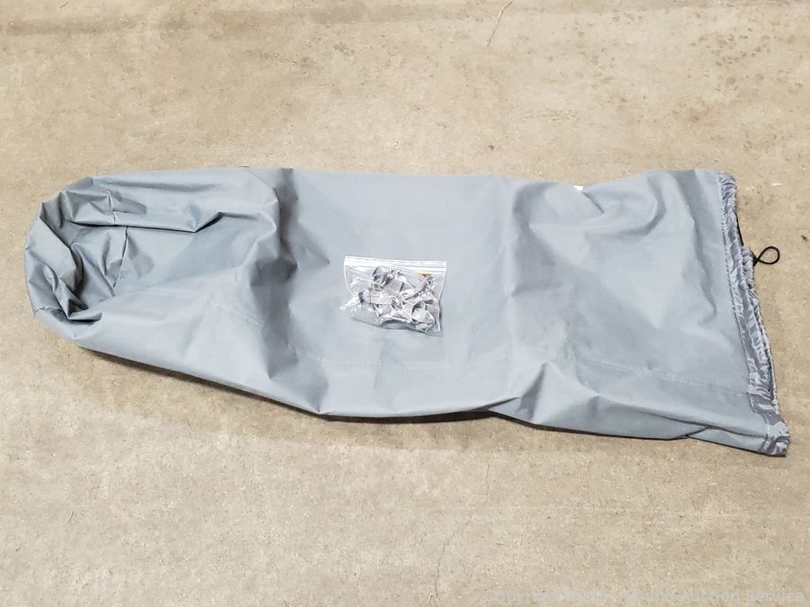 Comes with storage bag. Don't see any major issues. 40" H x 48" W x 27" D x 20" to seat.