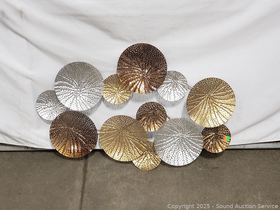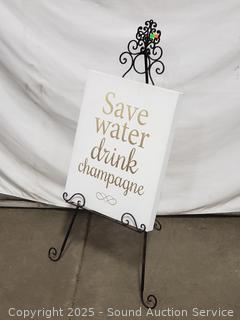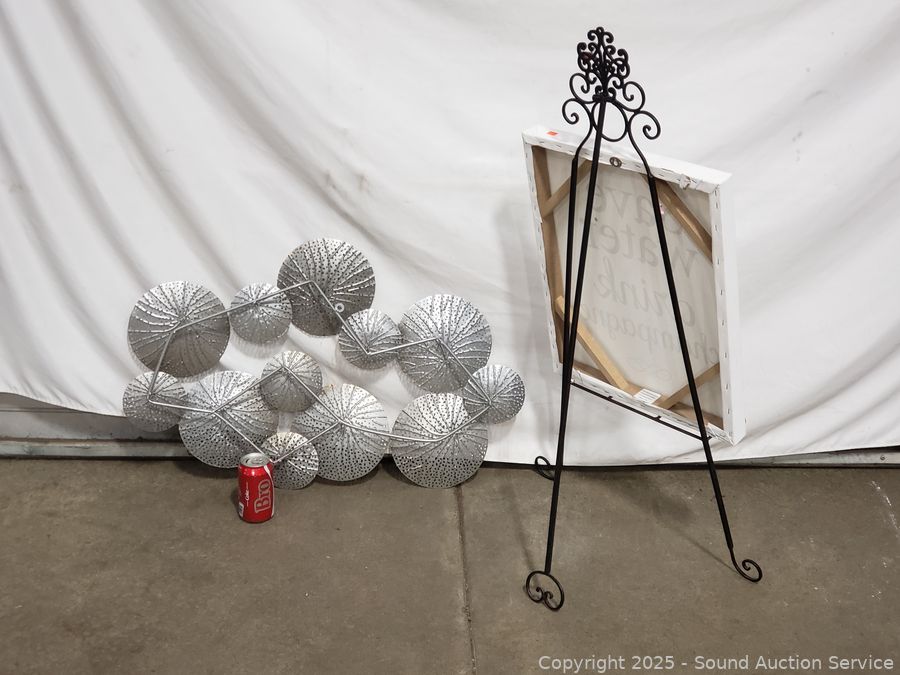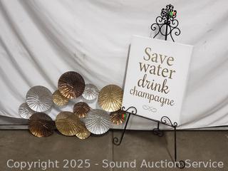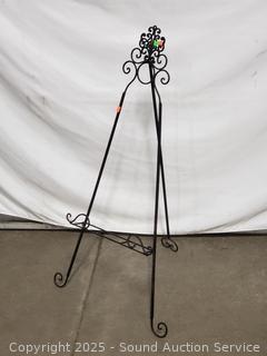 Lot #0081: Wrought Iron Easel w/Artwork & Metal Art Wall Decor