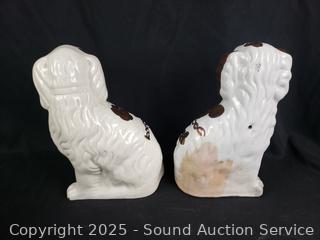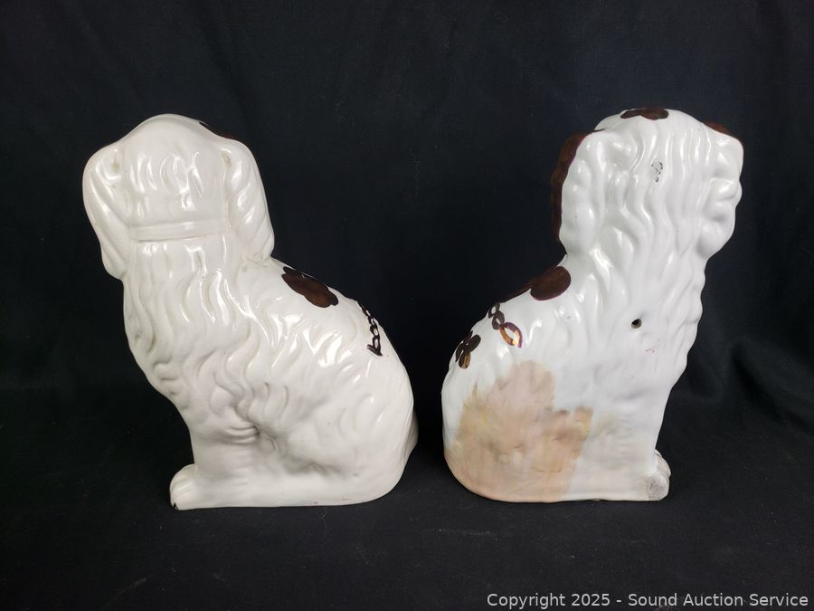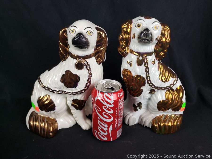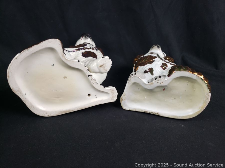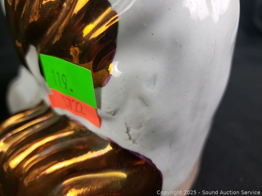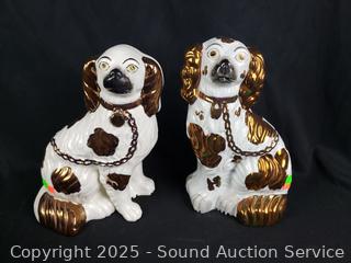 Lot #0119: 2 Porcelain Gold Painted Dog Figures