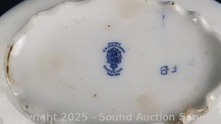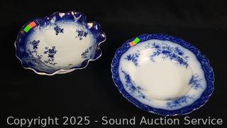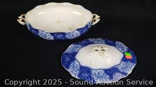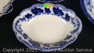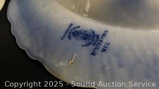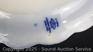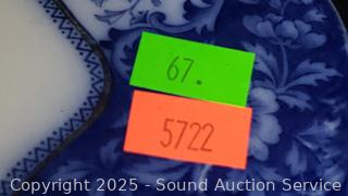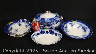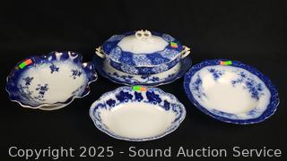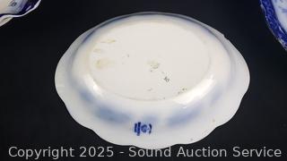 Lot #0067: 5pc Antique Flow Blue Porcelain Pottery Table Ware