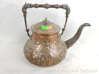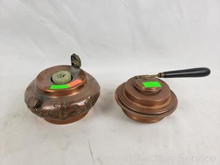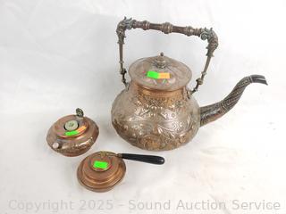 Lot #0110: Heavy Hammered Copper Teapot & 2 Burners