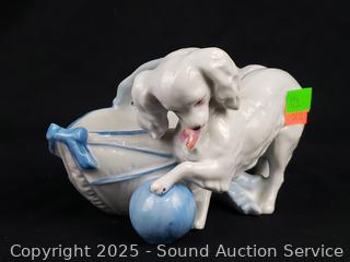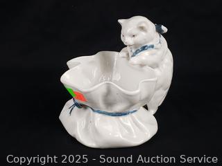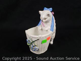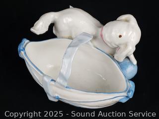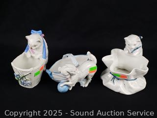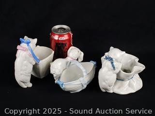 Lot #0123: 3pc Porcelain Cat/Dog Planter Figures