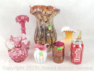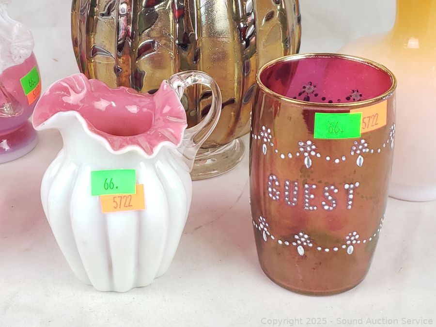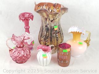 Lot #0066: 6pc Vintage Pink/Case/Art Glassware Decor