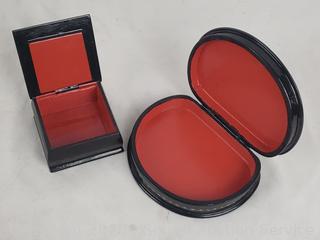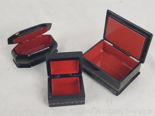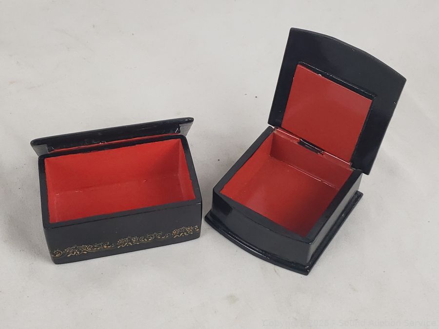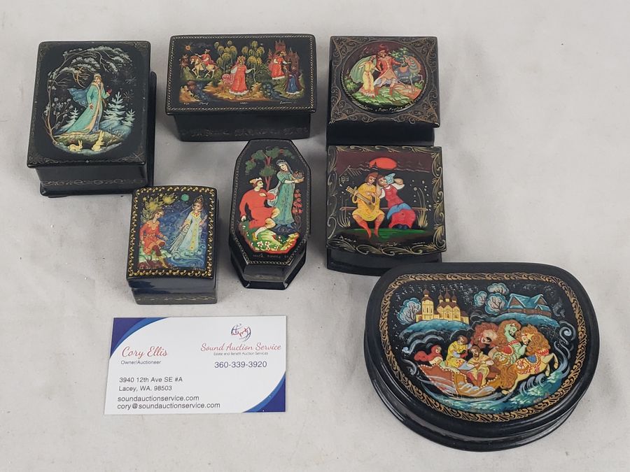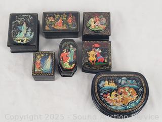 Lot #0060: 7 Vintage Russian Black Enamel Trinket Boxes