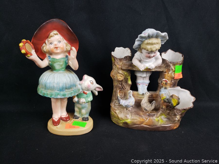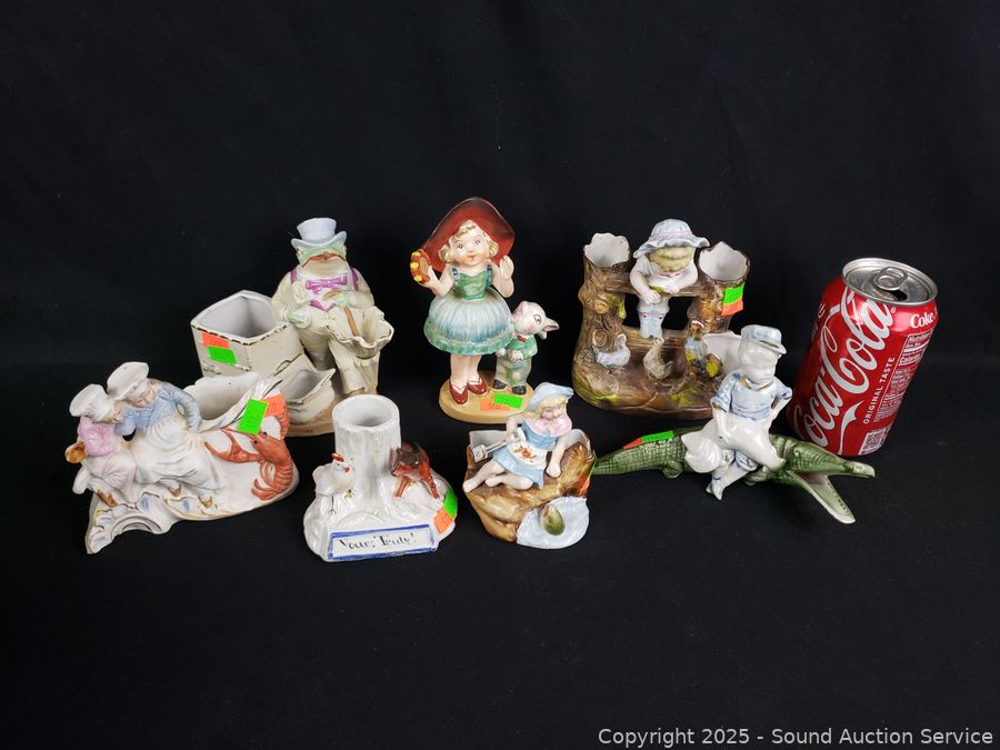 Lot #0113: 7pc Vintage Porcelain Bud Vase Figures