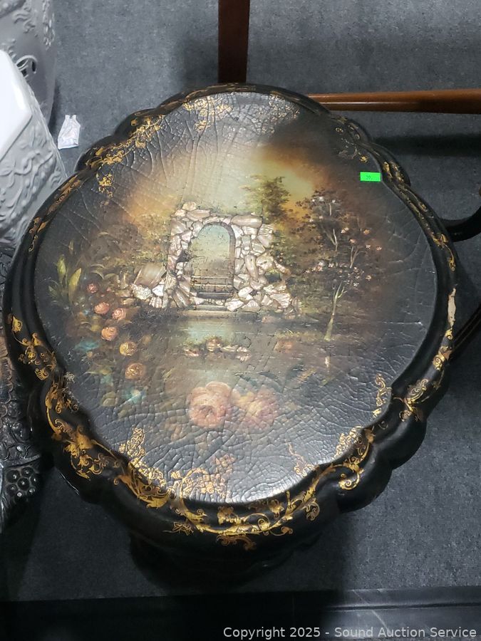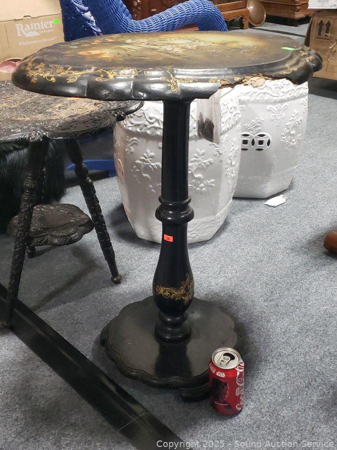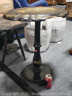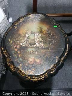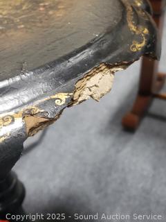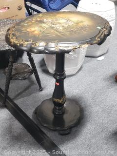 Lot #0039: Antique Ebony Finish Shell Inlayed Gold Accent Table
