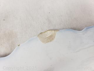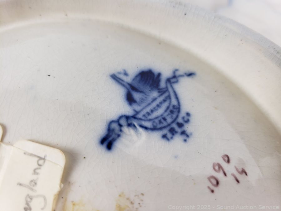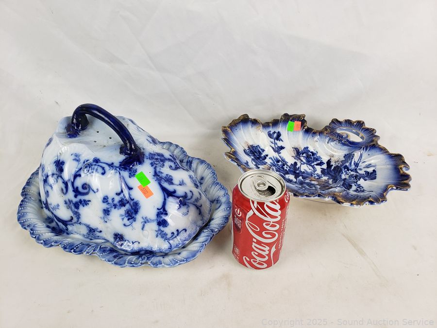 Some crazing, deep blue color. Have some age to them, covered server has a chip on bottom of plate, otherwise don't see any major issues.