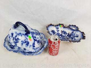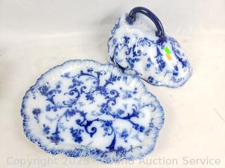 Lot #0088: Antique T.Rathbone Scalloped Dish & Ridgways Covered Server