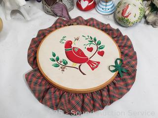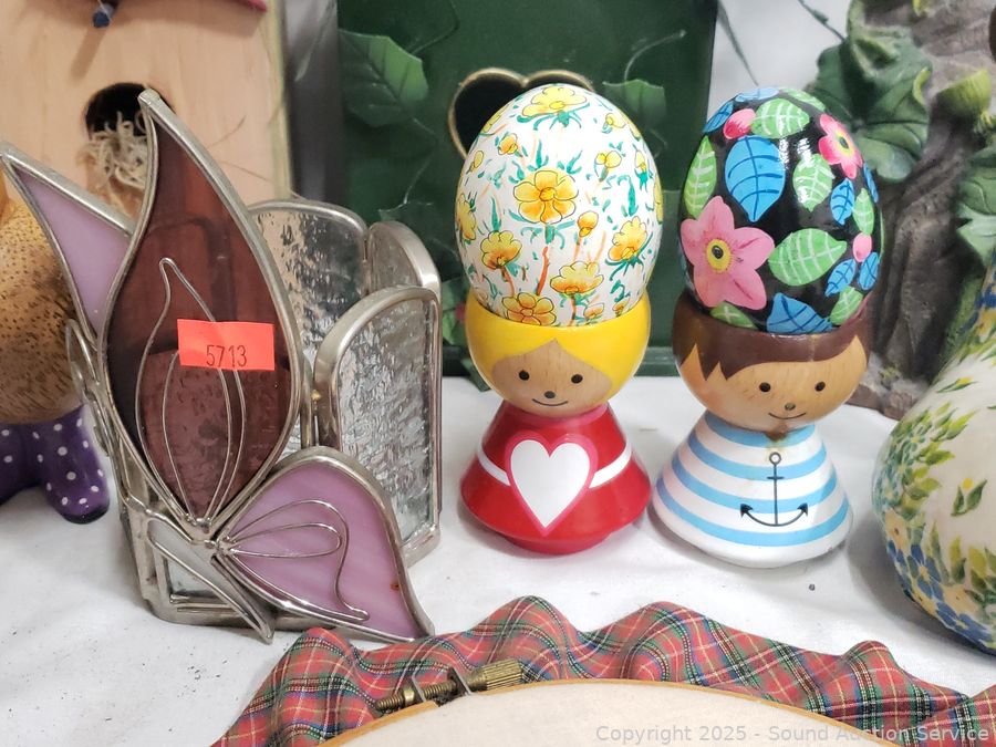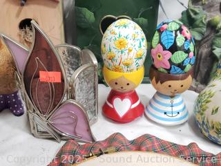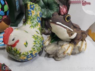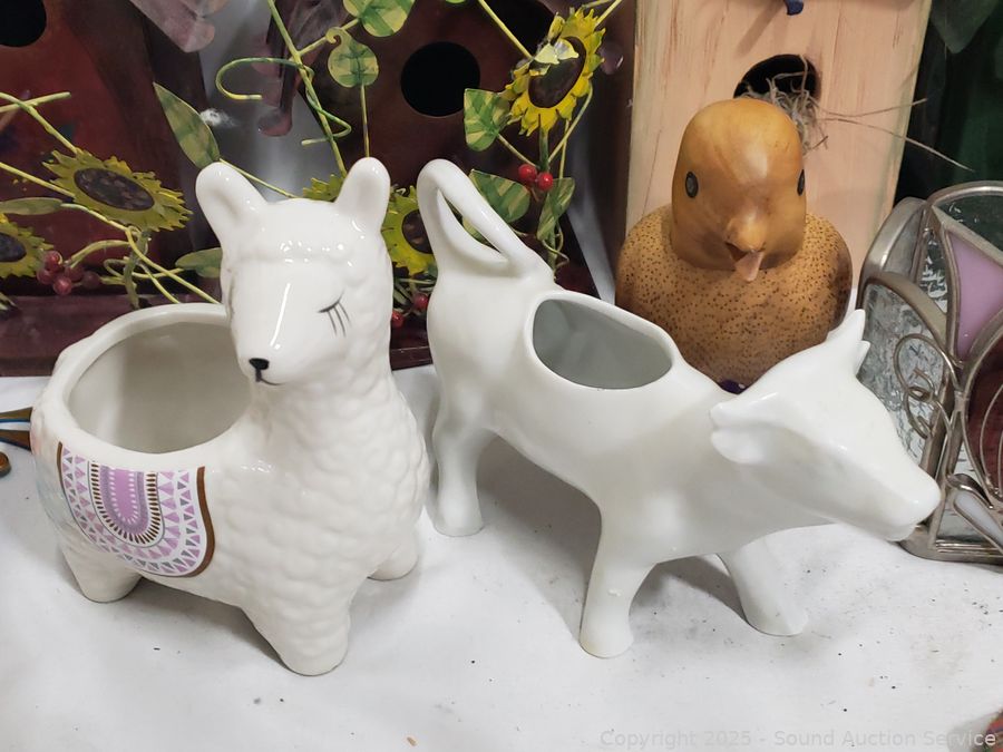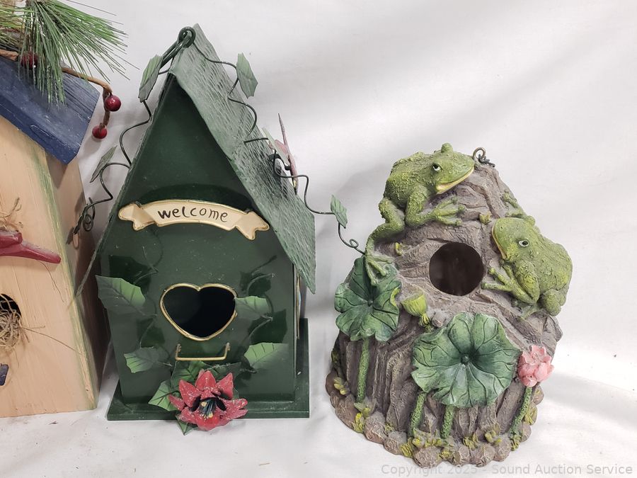 Bird house, planter figures, eggs, bird figures, etc. Refer to photos for lot contents, more details.