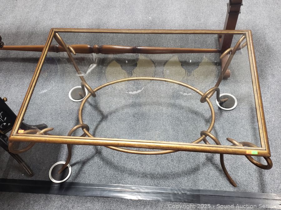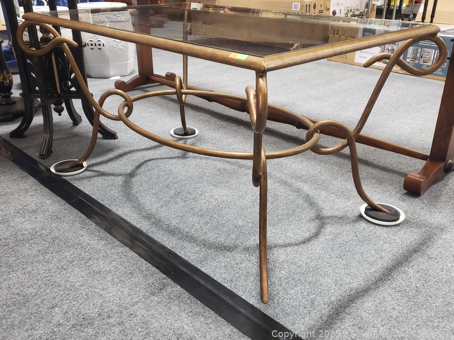 Lot #0036: Bronze Finish Metal Framed Glass Top Table