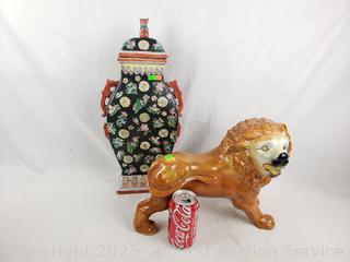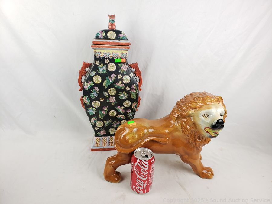 Lot #0179: Chinese Urn & Ceramic Lion Figure