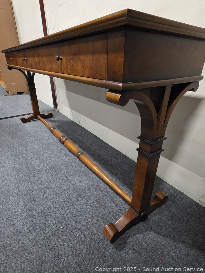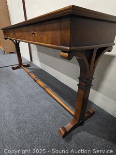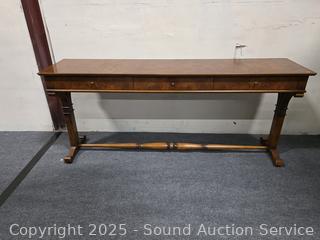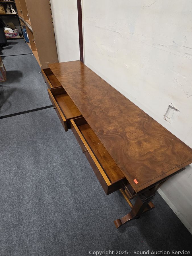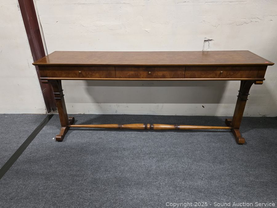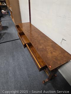 Lot #0005: Vintage Burl 3-Drawer Sofa/Hall Table