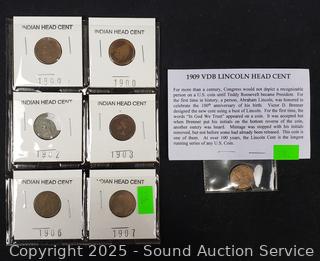 Lot #0310: (1) 1909 VDB & (6) 1899-1907 US Indian Head Cents