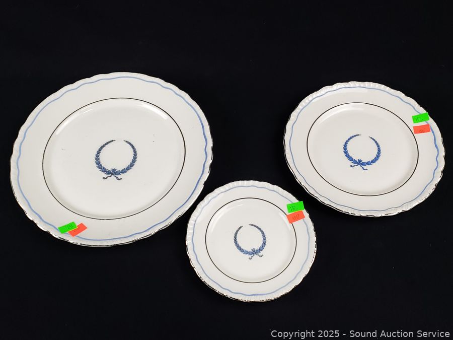 4 berry bowls, 2 snack plates, 3 salad plates, 3 dinner plates, 9 oval servers, 11.5" platter. Don't see any major issues.