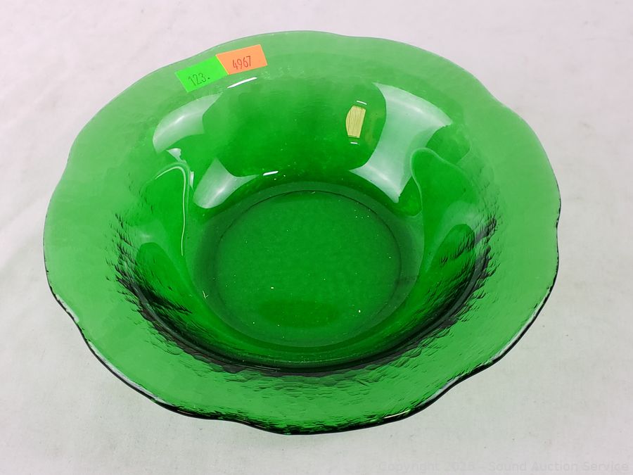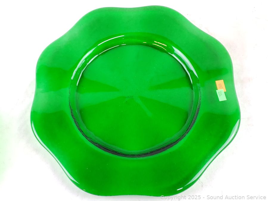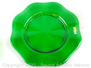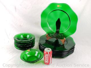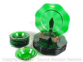 Lot #0123: 16pc Green Glass Plates & Bowls Set