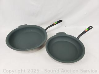Lot #0093: 2pc Stainless Non-Stick 10|12" Skillets w/Silicone Inserts
