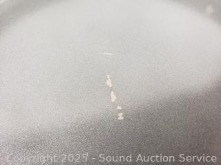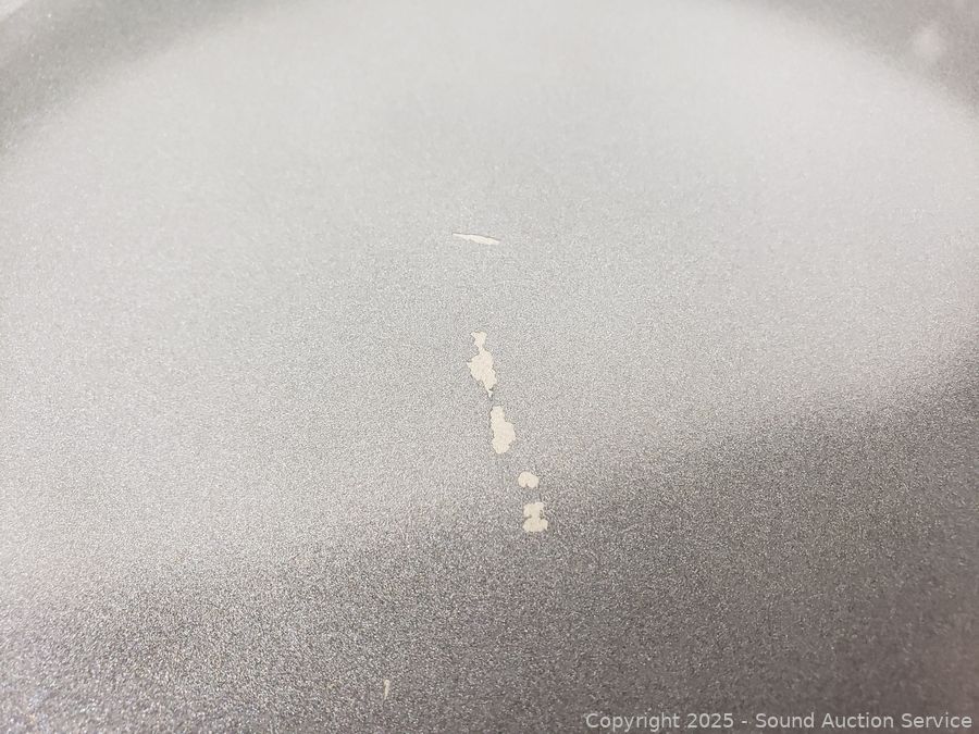 Smaller pan has scuffs in the teflon, both minor wear from use.